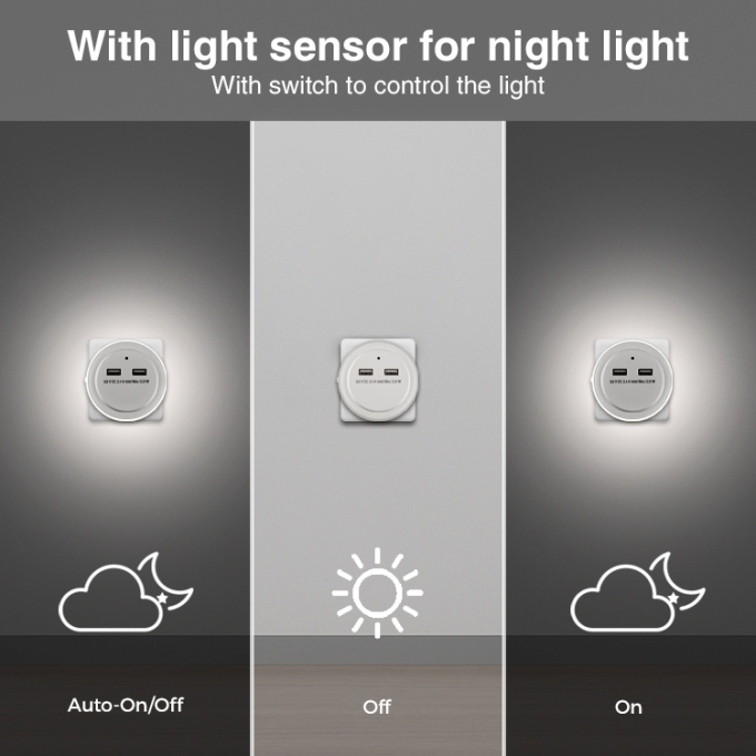 Learn more >This LED night light could automatically turn on at dusk and turn off at dawn with day night sensor.